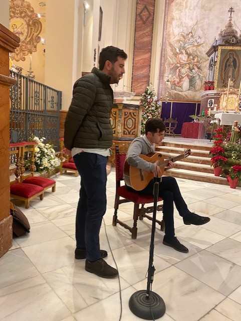 Se escenificaron diferentes pasajes de la Natividad de Jesús, se cantaron villancicos y D. Francisco, al cante, y D. Álvaro, a la guitarra, nos deleitaron con un villancico popular que sirvió de oración de todo el colegio al Niño Jesús que nacería en unos días.